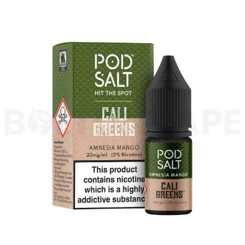 Part of the Pod Salt Fusions range, this e-liquid is simulated in the UK and showcases partnerships with renowned brands like Cali Greens. The field contains a variety of flavours, including fruit, dessert, and candy profiles.