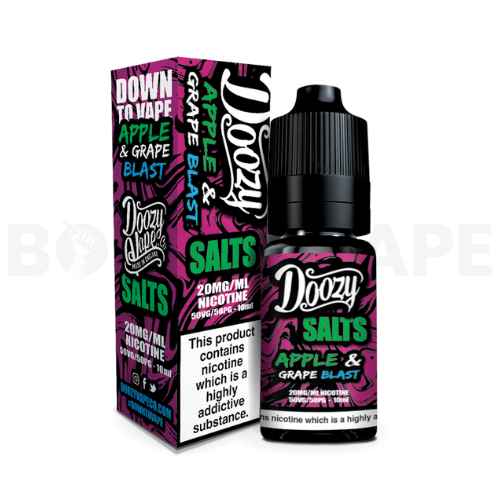 Experience the refreshing blend of Apple and Grape Blast nicotine salt e-liquid by Doozy Vape Co., a fruity fusion with a cool twist. The sweet and distinctive apple and grape notes create the core flavour, while a chilling menthol sensation softens the exhale.