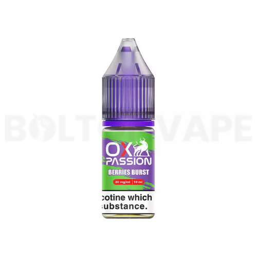 Berries Burst nic salt e-liquid by OX Passion delivers every puff's sweet, jammy flavour of juicy mixed berries.