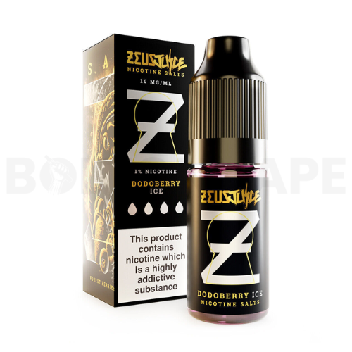 Zeus Juice's nic salt range, including Dodoberry Ice, is proudly made in the UK and offers diverse flavours, spanning fruit, menthol, dessert, and tobacco blends.