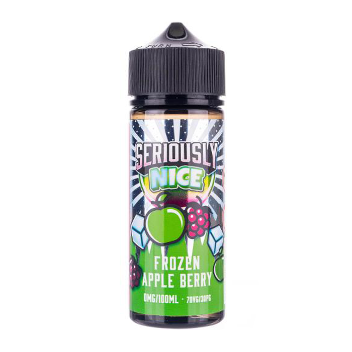 Seriously Nice presents Frozen Apple Berry shortfill e-liquid, a delightful combination of relaxed and sweet flavors. The apple and berry blend creates a juicy taste, further enhanced by refreshing menthol notes on exhale.