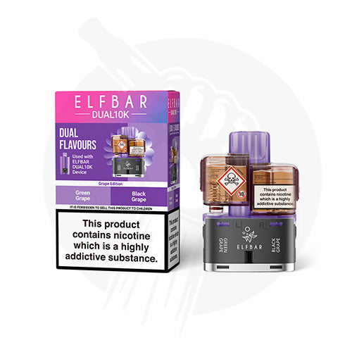 The Elf Bar Dual 10K Grape Edition pod pack comes with two different grape flavours: