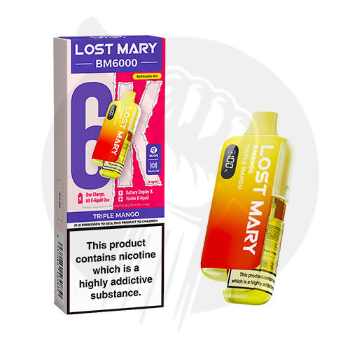 The Lost Mary BM6000 Prefilled Kit is a TPD-compliant MTL (mouth-to-lung) vape that offers long-lasting, cost-effective performance. It features a powerful mesh coil for intense flavour and a smooth vaping experience. With up to 6000 puffs, this device lasts up to 10 times longer than regular vapes, providing an extended and satisfying experience with every use.