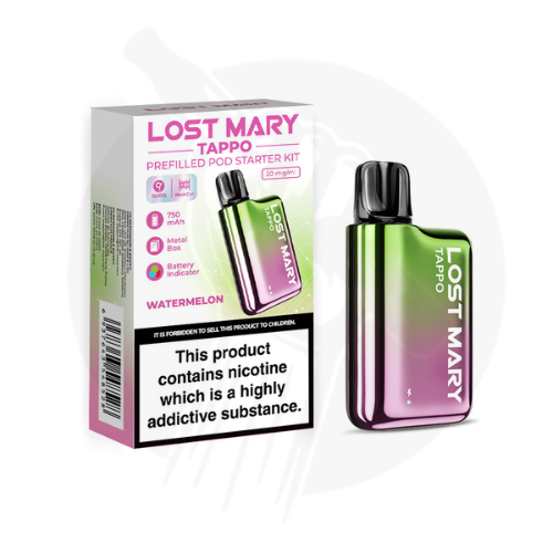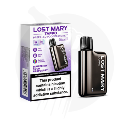 The Lost Mary Tappo Prefilled Pod Vape Kit is a compact, stylish, mouth-to-lung (MTL) vape device. It's designed for simplicity and ease of use with prefilled e-liquid pods. This kit features a Type-C rechargeable battery with a 750 mAh capacity, giving you reliable power throughout the day. Each pod comes prefilled with 2 ml of nic salt e-liquid containing 20 mg (2%) nicotine strength, delivering a smooth and satisfying hit. The Tappo kit is an excellent choice for people who want to quit smoking or switch to a more affordable and eco-friendly vaping option.