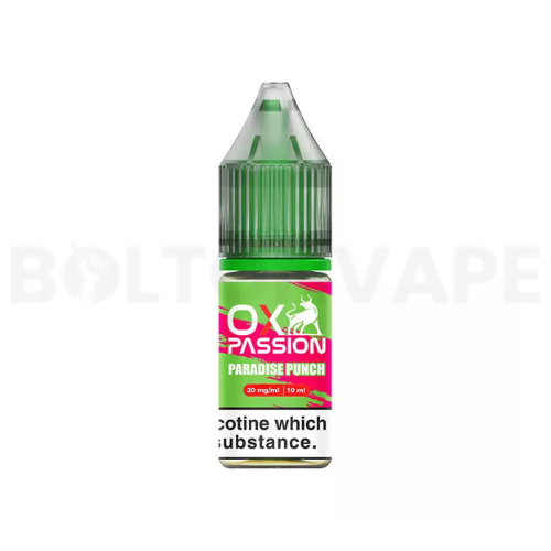 Paradise Punch nic salt e-liquid by OX Passion offers a vibrant tropical fruit duo. Each puff bursts with the refreshing taste of crisp watermelon and the sweetness of lychee.