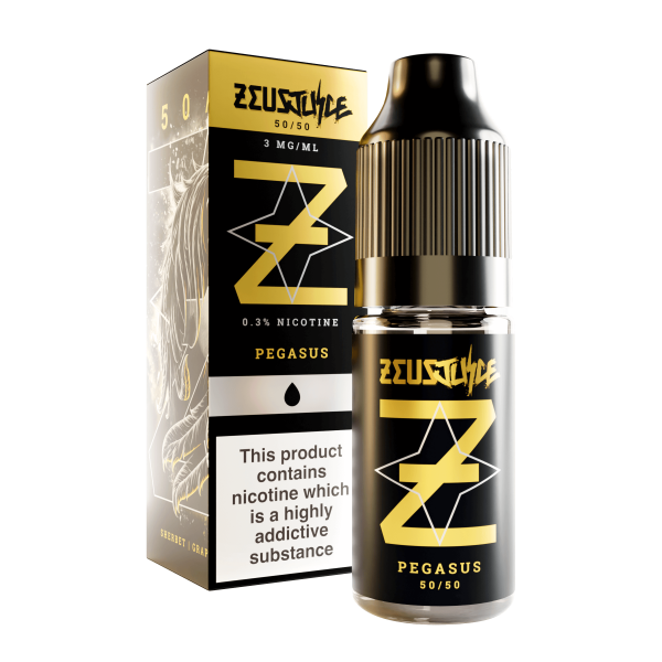 Indulge in the lovely sweetness of Pegasus 10ml E-Liquid by Zeus Juice. This sensual candy mixture harmoniously blends sherbet's sugary, fizzy nature with distinct notes of strawberry and grape.