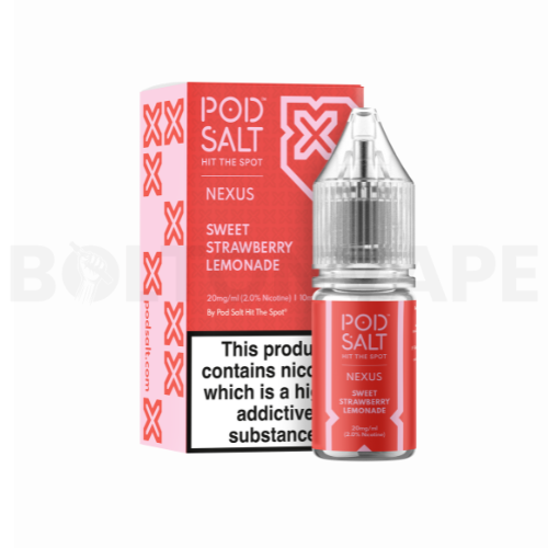 Indulge in the vital flavour of Sweet Strawberry Lemonade nic salt e-liquid by Pod Salt Nexus – a fruity, drink-inspired vape. This classic combination features strong and fizzy lemonade, promoted by the sweet addition of juicy, ripe strawberries.