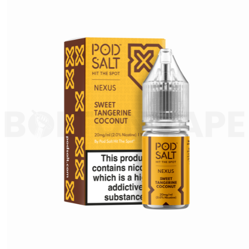 Embark on a tropical journey with Sweet Tangerine Coconut nic salt e-liquid by Pod Salt Nexus, a delightful pairing of exotic coconut and rich, juicy tangerines. This unique flavour profile offers a creamy experience with sweet and zesty hints.